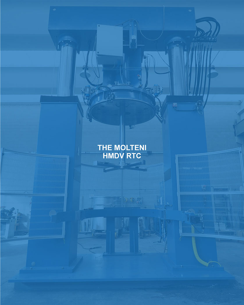 The Molteni HMDV Series is a family of specialty mixing systems that were designed for the mixing and dispersion of high viscosity, moisture-sensitive adhesives, sealants, and other polymeric products. The main benefit of the HMDV technology is the ability to produce full batches of finished product that are completely free of entrained or entrapped air. This benefit allows manufacturers of adhesives and sealants to minimize or eliminate short-fills, or inconsistent weights in the finished packaging that can result from air voids created by the mixing process. Additionally, the HMDV is designed to prevent the exposure of the ingredients and finished products to atmospheric moisture that could initiate the curing of the products.
