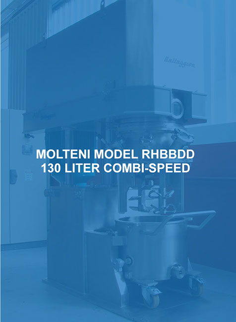 The Molteni Combi-Speed Series RHBBDD is a unique mixing system that can be operated as a Double Planetary Mixer, Planetary Disperser or Planetary Dual Disperser.