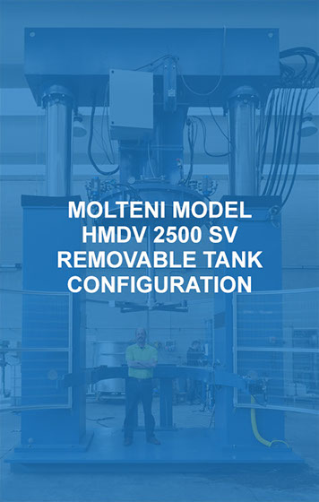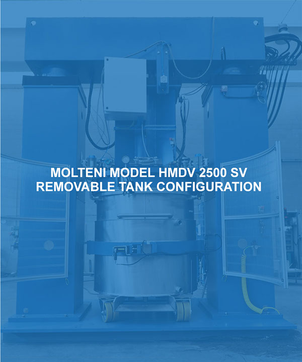 The Molteni HMDV consists of an innovative mixing tool attached to a single agitator shaft. A hydraulic system raises and lowers the mixing tool from the bottom to the top of the vessel as it rotates at high speeds, ensuring thorough top-to-bottom mixing and exceptional dispersion. The mixing tool may be hydraulically or electrically driven. The entire process takes place under vacuum, to completely exclude exposure to the atmosphere.