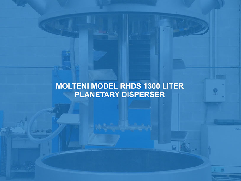 The Molteni Series RHDS configuration combines a Double Planetary mixing system with a centrally-mounted, fixed high speed disperser and a revolving scraper arm.