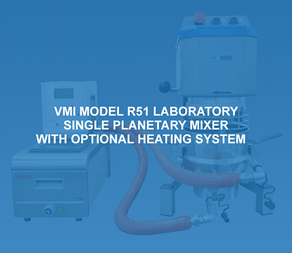 VMI Laboratory Single Planetary Mixers are an excellent research and development tool for the development of processes requiring the mixing and kneading of high viscosity products. The VMI Model R51 has a recommended working capacity of 3 liters (0.8 gallons) and a full holding capacity of 4.5 liters (1.2 gallons).