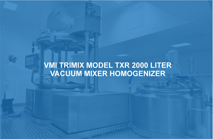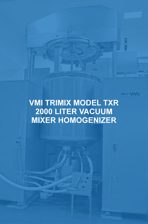 The VMI Trimix is a series of pilot and production scale Vacuum Mixer Homogenizers. The Trimix combines an Outer Anchor Agitator, Inner Counter-Rotating Blades, and a Bottom-Entering High Shear Homogenizer. The VMI High Shear mixer can include special liquid and powder induction features that allow raw ingredients to be dispersed directly into the high shear zone.